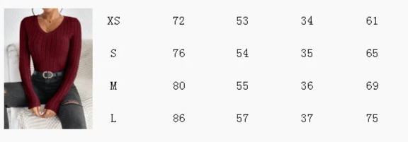 Feminino fino sexy malha manga longa topo feminino com decote em v borda confron